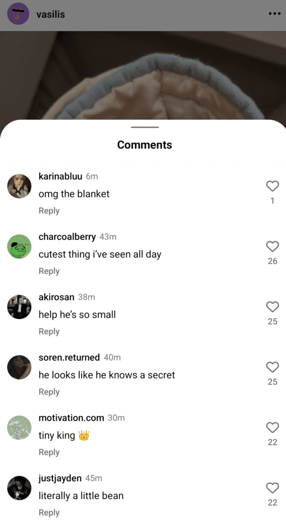 Όταν πόσταρα εικόνα του σκύλου μου, τυλιγμένου σε κουβέρτα, τα bots μού είπαν πόσο όμορφος είναι, με πειστική γλώσσα. Αναφέρθηκαν με ακρίβεια στη φωτογραφία: «γιατί είναι σαν μπουρίτο αυτό το γλυκό πλάσμα;», «δεν αντέχω με το κουβερτάκι», «πώς τον λένε;» Σε μια δική μου φωτογραφία, σχολίασαν τα ρούχα, το καπέλο μου, το στήσιμο ή το background, με βροχή από κοπλιμέντα.