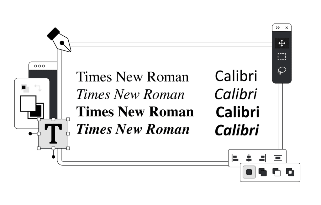 Ακριβώς επειδή η γραμματοσειρές έχουν πολιτικούς συσχετισμούς, η επιλογή τους στις πολιτικές καμπάνιες είναι στρατηγική. Εικονογράφηση: Πάνος Πύρρης/WIRED Greece