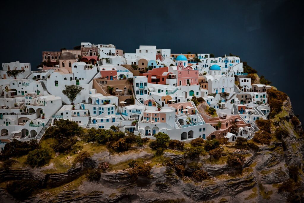 Σε κάθε αίθουσα, σου δίνεται η δυνατότητα να θαυμάσεις τις μινιατούρες και σε night mode, ακόμη κι όταν έξω καίει ο μεσημεριανός ήλιος. Κάθε λίγα λεπτά, τα φώτα χαμηλώνουν και τα μικροσκοπικά λαμπάκια των μακετών αναλαμβάνουν τον χώρο, αποκαλύπτοντας νέες λεπτομέρειες. Η Μονή του Μεγάλου Μετεώρου, ή η καλντέρα της Σαντορίνης, αλλάζουν τόνο και φωτίζονται πιο κινηματογραφικά, σχεδόν ονειρικά.