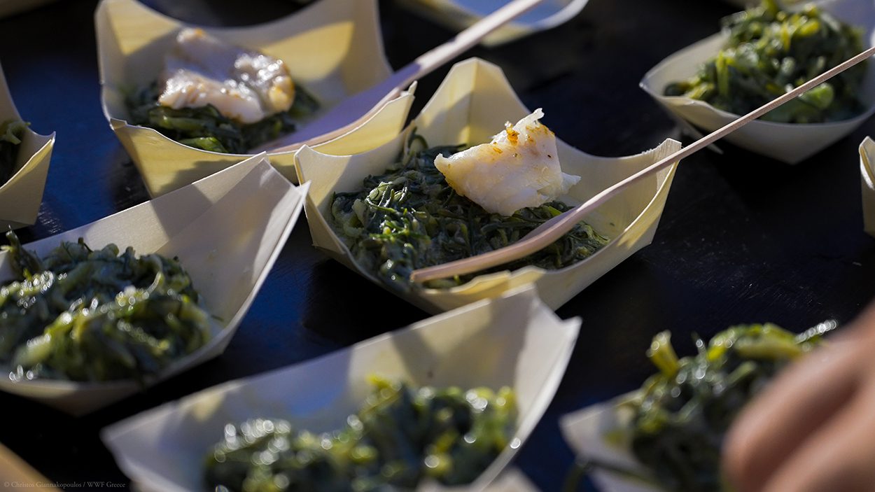 Στις ανησυχίες του κ. Μαμαλάκη απάντησε η βιολόγος και εξωτερική συνεργάτιδα του WWF Γιώτα Σωτηροπούλου, η οποία μας έδειξε έμπρακτα πώς μπορούμε να εισάγουμε συγκεκριμένα τα ξενικά είδη στη διατροφή μας. Δοκιμάσαμε πέστο από καπνιστό σαρδελόγαυρο, σεβίτσε γερμανού, λουκάνικο από κέφαλο καθώς και γύρο από λεοντόψαρο, τα οποία πέρα από το ότι ήταν πεντανόστιμα, μας έκαναν να θέλουμε να μοιραστούμε άμεσα το Fish Guide.